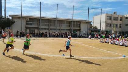 まずは、5年生です。リレーと南中ソーランを行いました。