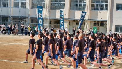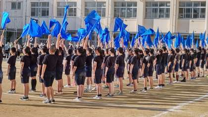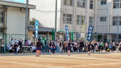 運動会の最後は、6年生によるフラッグの演技です。「成功させるぞ」「みんなを感動させるぞ」という気持ちがあふれ、素晴らしい演技になりました。