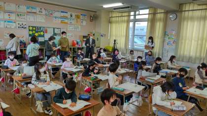 市岡小学校では、教員一人一人がよりよい授業をめざして、授業研究に取り組んでいます。