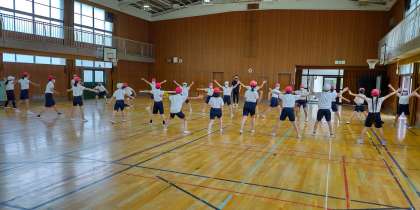 続いて、足ジャンケンです。足だけじゃなく体全体で表しました。