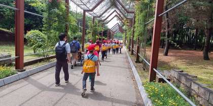 雨がやみました。さわやかな5月の風の中、今日は4年生が、大仙公園に遠足で、やってきています。