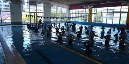 講堂兼体育館の建設工事のため、今年度のプール水泳は、ショウエイスポーツクラブみなとをお借りして実施します。