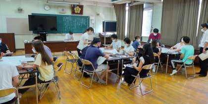 放課後は、全教員が一堂に会して、研究討議会を行いました。この日の授業について意見を交換しました。