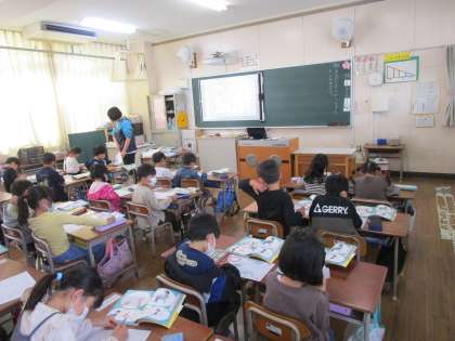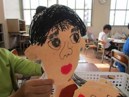 1年生の様子です。パスを使って自画像を大きくかいたり、国語の時間は様々な種類の線のなぞり書きを行いました。