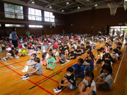来週の月曜日は運動会の代休でお休みですので、今日の朝は臨時の児童朝会を行いました。講堂で行いましたが、子どもたちは最後までしっかり話を聞くことができていました。