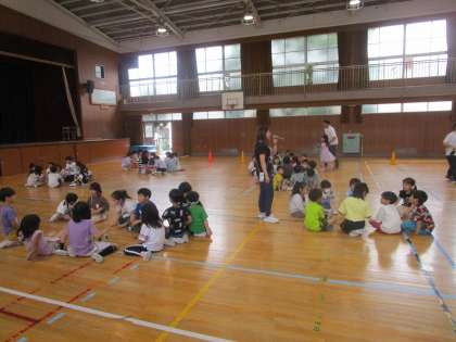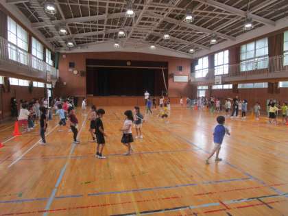 5時間目は1・2年生の交流会を講堂で行いました。これから一緒に活動していく上で、なかよくなるために今日は楽しくゲームをして過ごしました。2年生は1年生をしっかりリードしてくれていました。