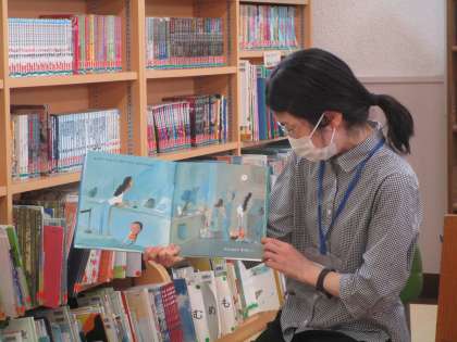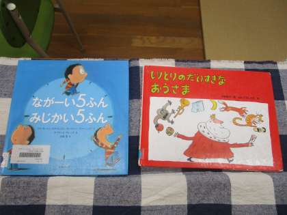 「ながーい5ふん みじかい5ふん」「しりとりのだいすきなおうさま」を読んでいただきました。中学年を対象にした読み聞かせでしたが、たくさんの子どもたちが集まってくれました。