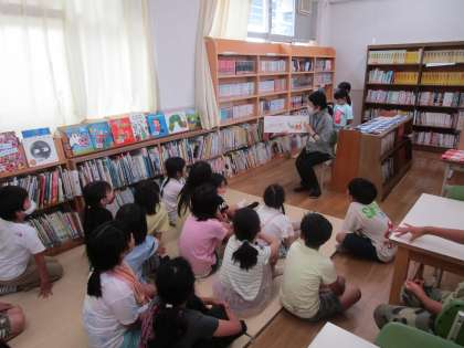 お昼休みは図書室で司書の先生に読み聞かせを行っていただきました。