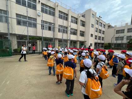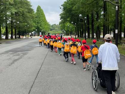 1年生、2年生は遠足で鶴見緑地に出かけました。先週、雨で延期になっており、今日も昨日の雨で心配でしたが、朝には雨もあがり無事に実施できました。