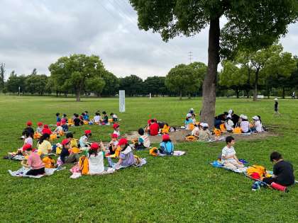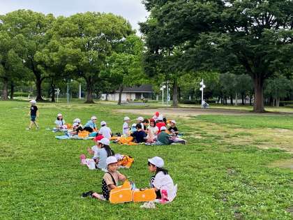 さくやこの花館の見学を終えた後は、大芝生広場に移動し、子どもたちが楽しみにしていたお弁当を食べました。行儀よくお弁当を食べた後はおやつを喜んで食べていました。