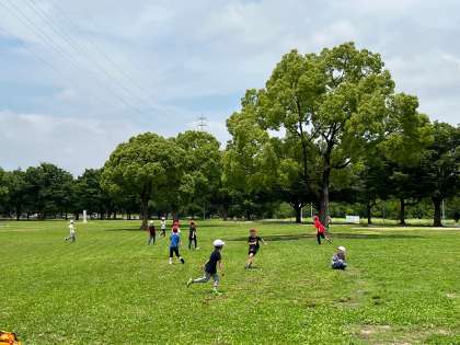 お弁当を食べた後は大芝生で元気いっぱい遊ぶことができました。広いので思い切り走ることができていました!