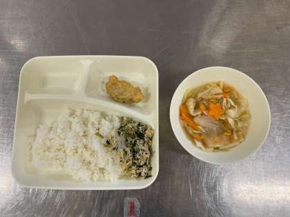 すまし汁にはラッキーにんじんが入っていました。子どもたちの楽しみのために給食調理員さんが工夫してくれています。