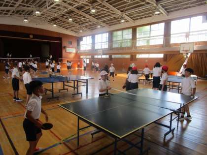 6時間目はクラブ活動の時間でした。4年生から6年生の子どもたちが参加します。運動場ではドッジボール、体育館では卓球、バドミントンに取り組んでいました。運動場では日差しが厳しい中、子どもたちは一生懸命、ボールを追いかけていました。