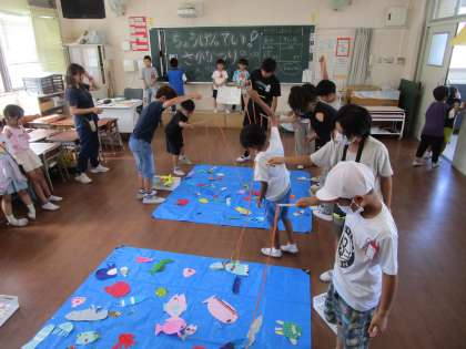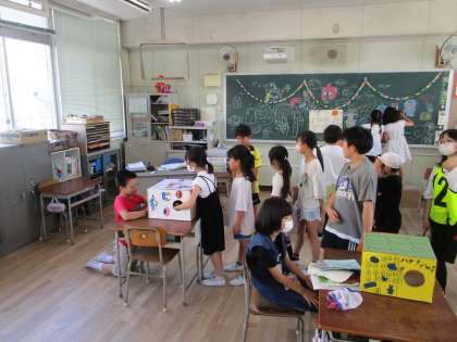 1・2・3年生のお店の様子です。1年生は初めての経験ですが、担任の先生と一緒にお店を考え、一生懸命店番をがんばっていました。2年生、3年生はどんどん上手にできるようになっています。