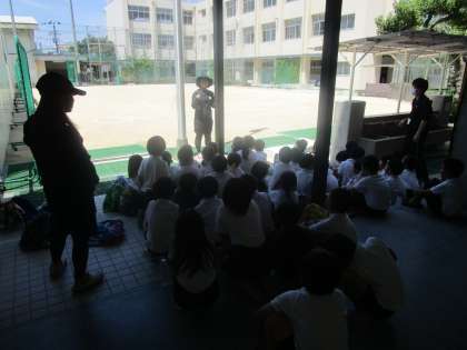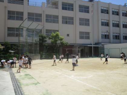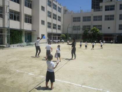 1年生は3時間目に生活科の学習で水遊びをしました。子どもたちはペットボトルなどで遊び道具を作り、思い思いに友だちと水遊びを楽しんでいました。