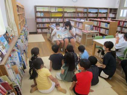 昼休みは図書室でお話し会がありました。今日は図書委員会の6年生が絵本を読んでくれました。大変上手に読むことができていました。図書室に来ていた子どもたちも喜んでいました。
