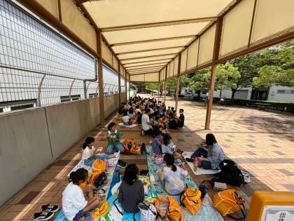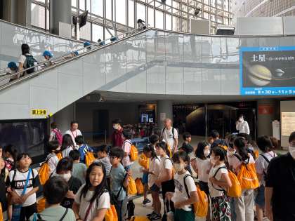 4年生は社会見学で大阪市立科学館に出かけました。到着するとすぐにプラネタリウムを鑑賞しまさした。太陽や月の動き、夏の星座のお話をしていただきました。子どもたちは興味深く聞き入っていました。