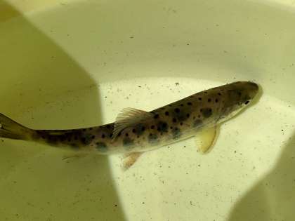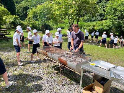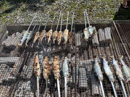 大変立派な魚です。アマゴはインストラクターさんが串をさして焼いてるいただきます。