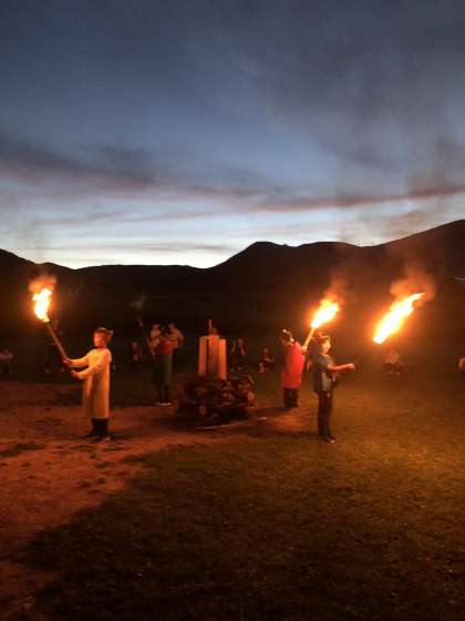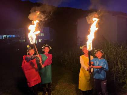 火の精霊たちが火の神と一緒にトーチで点火します。