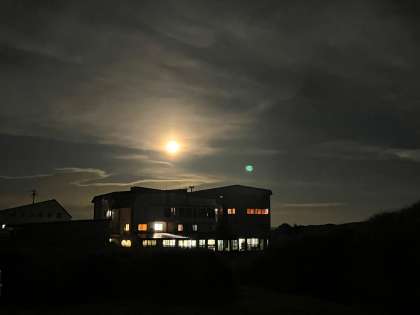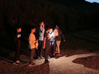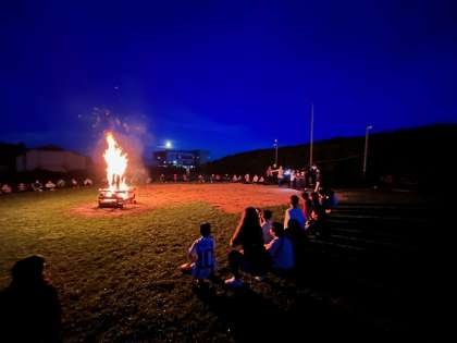 きれいな満月が見える中、キャンプファイヤーが始まりました。キャンプファイヤー係のメンバーが一生懸命盛り上げようとしてくれてます!