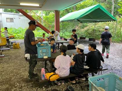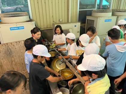 食べた後の後片付けが一番大切です。飯盒やカレー鍋をしっかり洗って返却します。ピカピカに磨いて返却していました。宿舎の方も喜んでおられました。とても大切なことです!