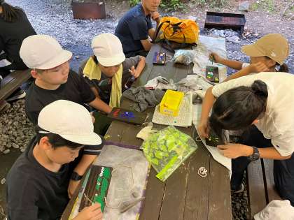 金具を付けて色付けをします。林間の思い出に残る作品を頑張って作っていました。明日、持って帰ります。見てあげてください!