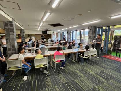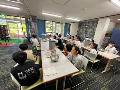 宿舎の方の説明を聞いてから、班ごとに作り始めます。真剣に聞いていました。