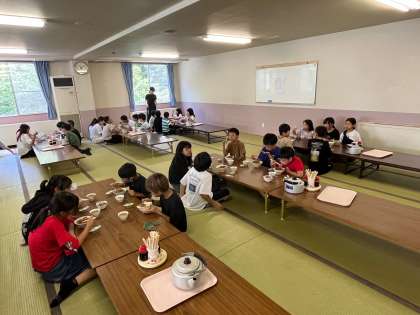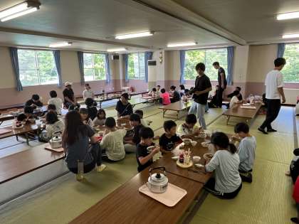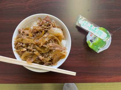 アイスクリームを食べたらすぐにお昼ご飯でした。宿舎での最後の食事は牛丼でした。
