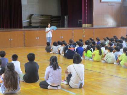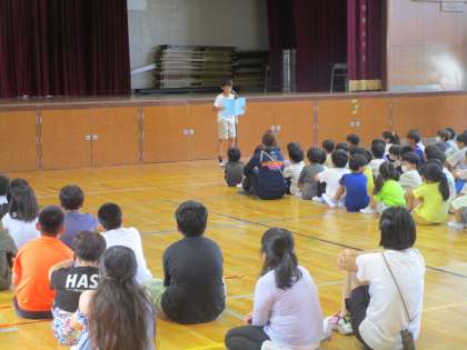 始業式の中で5年生児童3名が2学期の抱負について作文を発表しました。夏休み中の林間の思い出を交え、2学期の頑張りを語ってくれました。