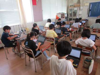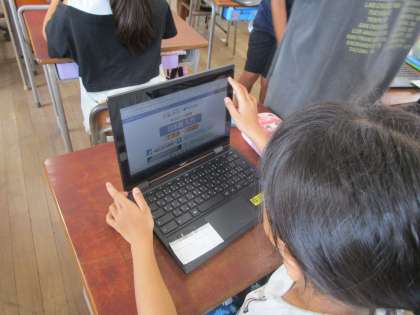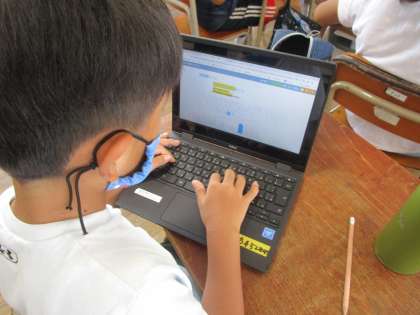 今日から毎週金曜日の朝、タブレットを使うためのタイピングを練習する「タイピングタイム」が始まりました。子どもたちがタブレットを使うときに文字をキーボードで入力する技能が必要になります。タブレットにインストールされているソフトを使って毎週練習していきます。ご家庭でも機会がありましたら見てあげてください。