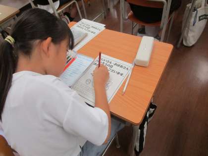 6年生の様子です。算数科の学習では、タブレットで自分の考え方のメモを作成し、全体で共有する活動を行っていました。外国語の時間は2学期も金曜日は港南中学校の英語科の先生にお越しいただき授業をしていただきます。また、敬老の日に向けて子どもたちは地域の高齢者の皆様にお手紙を書かせていただきます。今日は6年生がお手紙を書いていました。