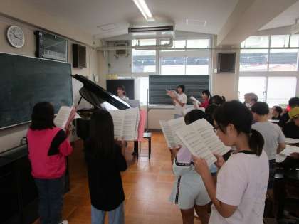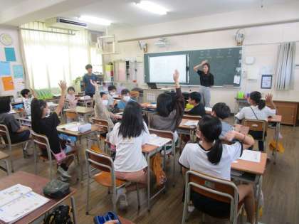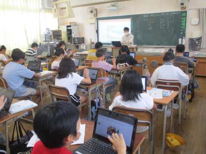 5年生、6年生の様子です。5年生の音楽科の学習では、子どもたちが曲にあわせて体を揺らしながら歌をうたう姿がとても素敵でした。5年生の外国語科の学習ではC-NETの先生が来られて授業をサポートしていただいてます。6年生の外国語科の学習では夏休みの思い出を英語で表現したスライドをタブレットで作成していました。