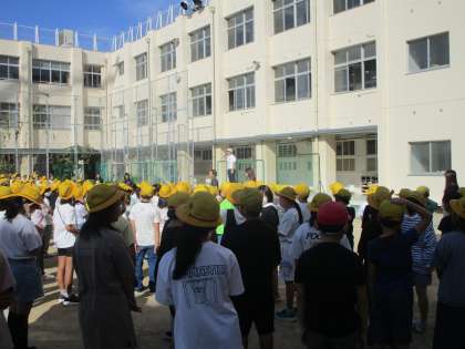 朝は児童朝会を運動場で行いました。9月までは暑さを考慮して講堂で行っていましたが、10月からは運動場で行います。比較的涼しく、青空の下で久しぶりに朝会を行うことができました。早いものでもう10月になりました。現学年の折り返しです。今週は6年生の修学旅行もあります。充実しした10月になることを願っています。