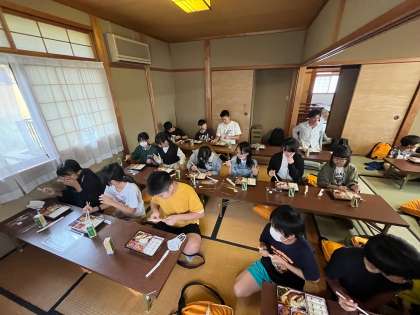 作陶が終わったあとは昼食のお弁当です。宗陶苑の広間を2箇所お借りしていただきました。