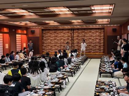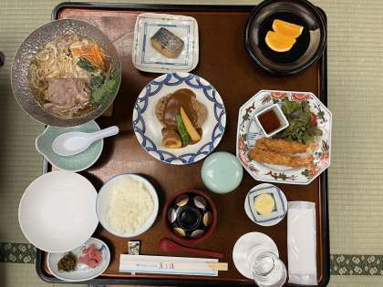 写真を見ていただいたらわかりますように大変豪華でボリュームのある食事です。子どもたちもお膳を前にして大喜びでした。