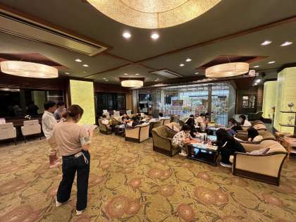 夕食後、子どもたちは大浴場での入浴となります。広い浴場でお湯は温泉です。ゆっくり入ることができました。