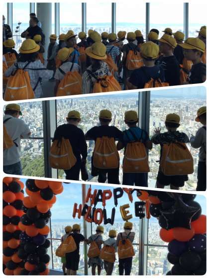 午後よりあべのハルカスへ行きました。市岡小学校の位置や京セラドームを探す児童もおり、方角を意識しながらまちの様子が東西南北でどのように違うかを学習することができました。
