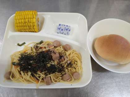 ・ウインナーとキノコの和風スパゲッティ ・焼きとうもろこし