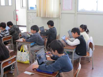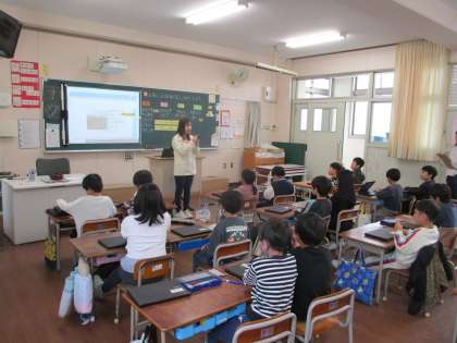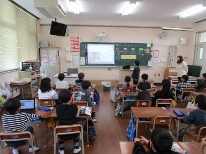 5時間目は1年生で生活科の公開授業がありました。八幡屋公園での秋見つけについての学習でした。子どもたちは八幡屋公園で見つけてきた秋の様子をタブレットで撮影していました。1年生も発表ノートを使って、自分の見つけてことを発表しました。「どんぐりが重たかった」「カタツムリが木にぶら下がっていた」「どんぐりに殻がついていた」など子どもたちはたくさんの気づきを発表することができていました。