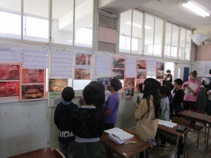 単元で授業を行いました。子どもたちはスーパーマーケットの見学で調べたことをもとに学習をすすめていました。