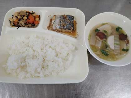 身があっさりとしているので、煮つけや塩焼きのほか、ムニエルやホイル焼き、フライ等のいろいろな調理法があります。今日の給食では、蒸し焼きにしたあと、しょう油やみりん、料理酒を煮て、ゴマを加えたものをかけて提供されました。
