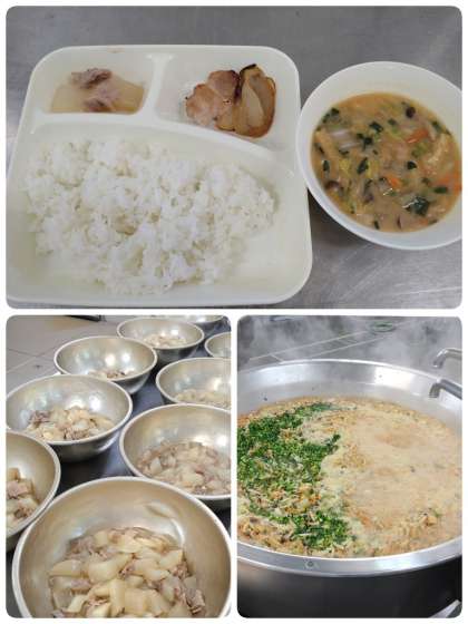 今日の給食では、昆布と削り節でとった出汁で豚肉と一緒に煮こみ、みりんとしょう油で味をつけたうえに、水溶きでん粉でとろみをつけた煮物として提供されました。