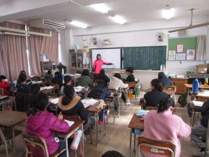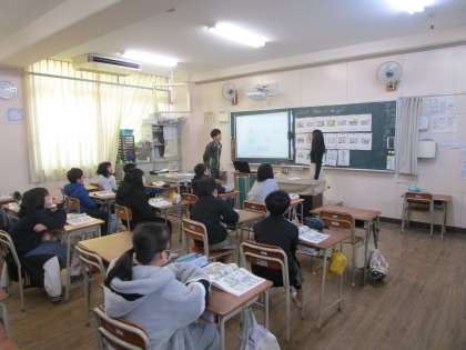 5年生は外国語の学習に取り組んでいました。町にある様々な施設、警察署や図書館などを英語で表していました。