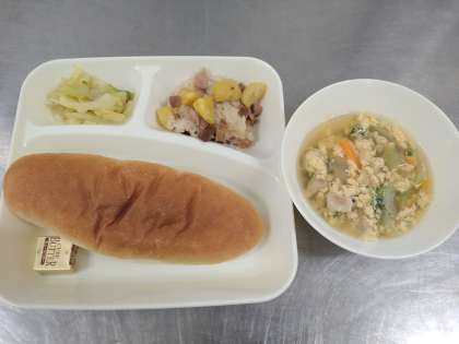 ・中華おこわ ・卵スープ ・キャベツのオイスターソース炒め