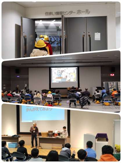 現地では、最初に大きなホールに入り、スタッフの方からのスライドショーを用いた説明を聞いたり、周りに展示している昔の道具を触ったりしました。特に黒電話については、見たことがない子も多く、受話器を反対に持つ子が何人かいました。