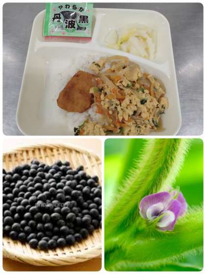 今日の副食として提供されたソフト黒豆ですが、原材料は国産の丹波黒大豆です。