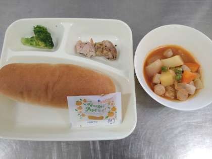 ・ブロッコリーのサラダ ・コッペパン ・アプリコットジャム ・牛乳