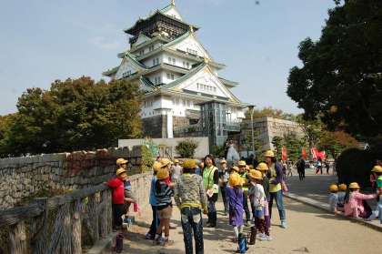 10月30日(金)秋晴れのもと、大阪城公園に全校で遠足に行きました。西の丸庭園に集合したあと、さわやか班でオリエンテーリングをしました。児童会のめあて(我らは市岡ファミリー 友情・団結・協力で 天下を勝ち取れ)にちなんだ問題が、各ポイントで出され、紙製の手裏剣を投げ入れたり、新聞紙で兜を作って紅葉した葉っぱを飾ったり、茶の湯の作法に従ってゲームをしたりして楽しみました。どの班も、助け合って活動をし、ポイントを獲得していました。また、PTAの実行委員さんがボランティアとして、道路や公園内の巡視や、子どもたちとともにオリエンテーリングにも参加をしてくださいました。ご協力ありがとうございました。