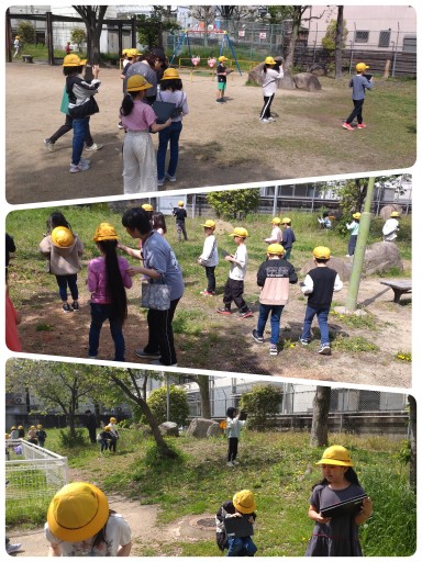 今日の2時間目、3年生が学校近くの市岡中央公園に出かけ、春の生き物を探しました。