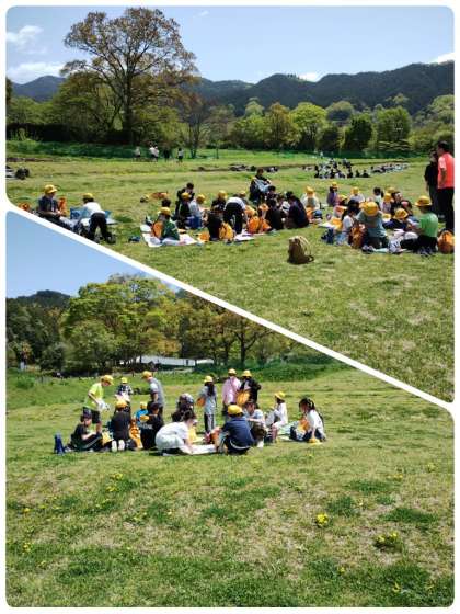 そしていよいよ昼食タイムになったので、緑豊かな芝生の上にシートを敷き、お弁当を開きました。もちろん空腹であったこともありますが、さわやかな青空の下で、保護者の方が愛情をたっぷりと込めていただいた弁当の味は格別だったようで、みんな箸が止まりませんでした。